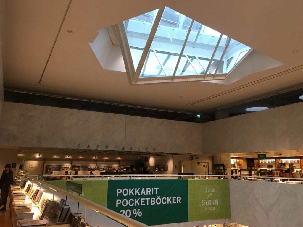 本店はフィンランドのデザイナーであるアルヴァ アアルトが設計したアカデミア書店の2階にあります。