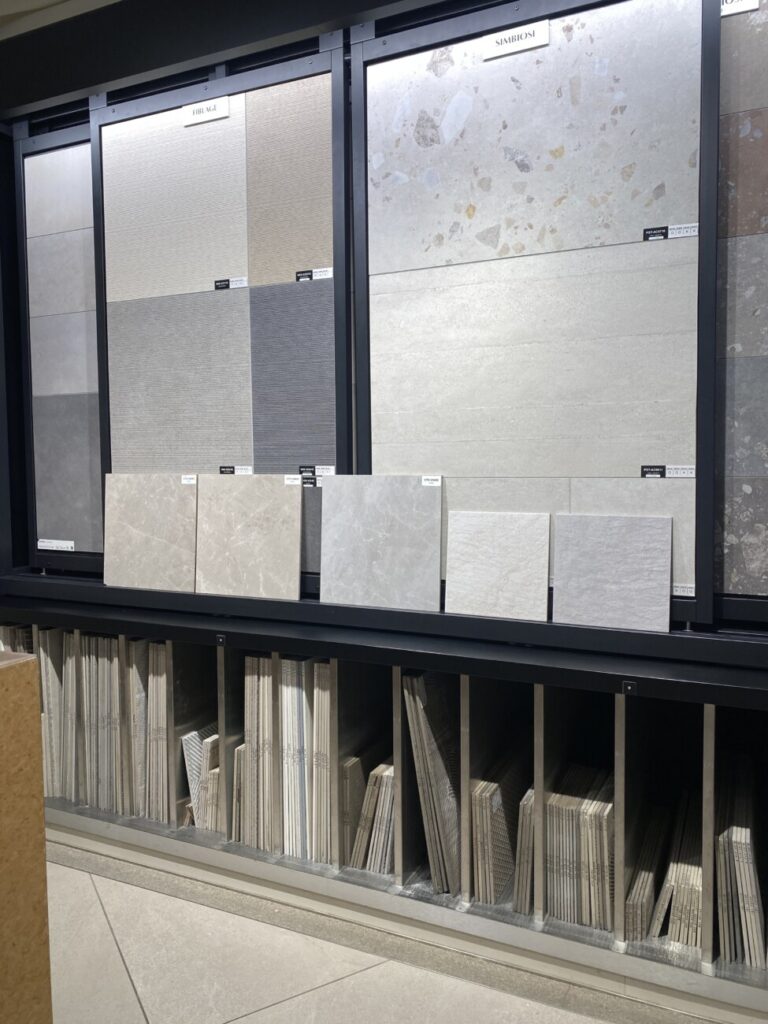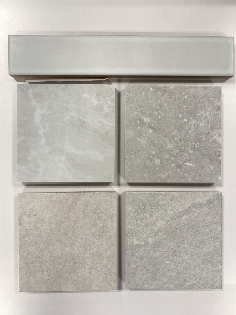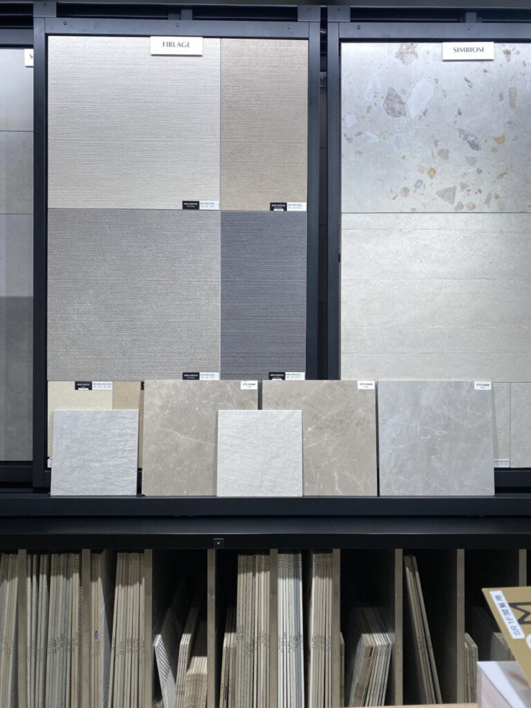 タイルは取り寄せ出来るサンプルはサイズが小さく、石目など個体差があるのでショールームでもチェック