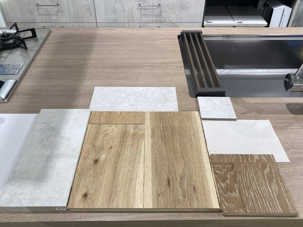 キッチンの仕上げ材はサンプルがないのでグラフテクトで最終チェック